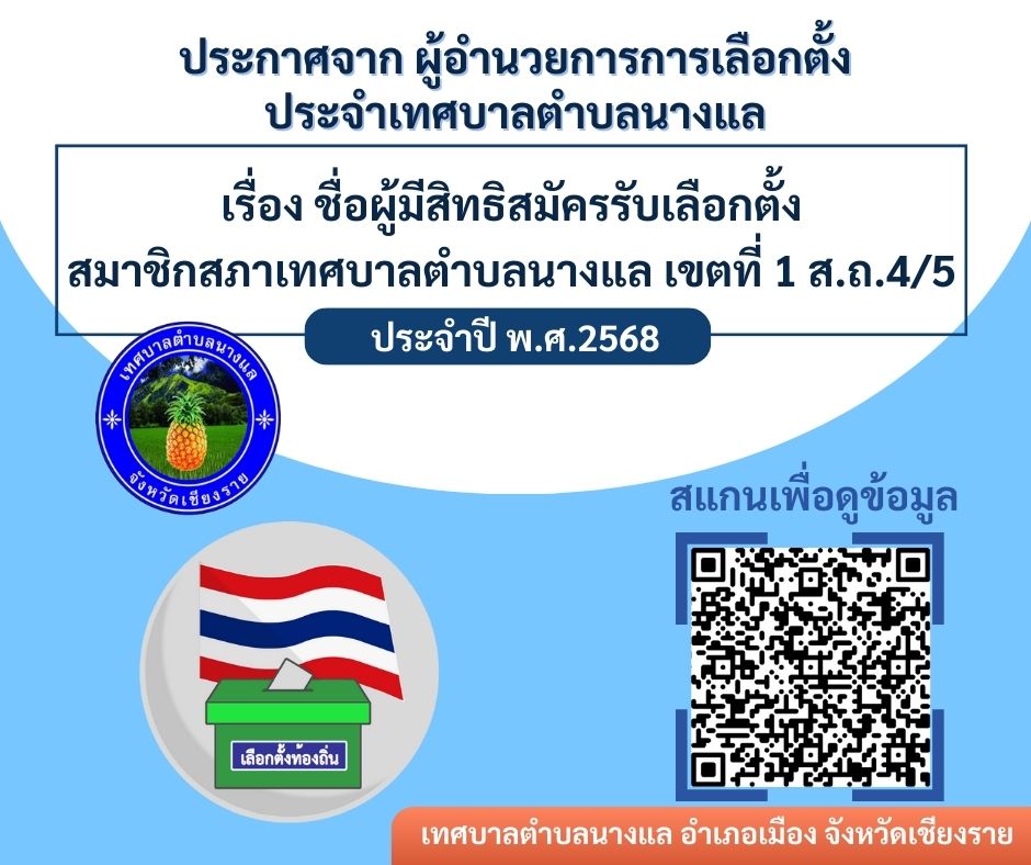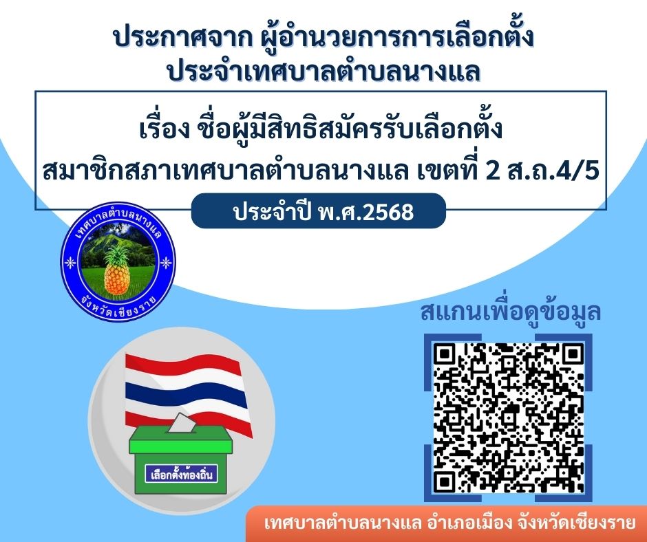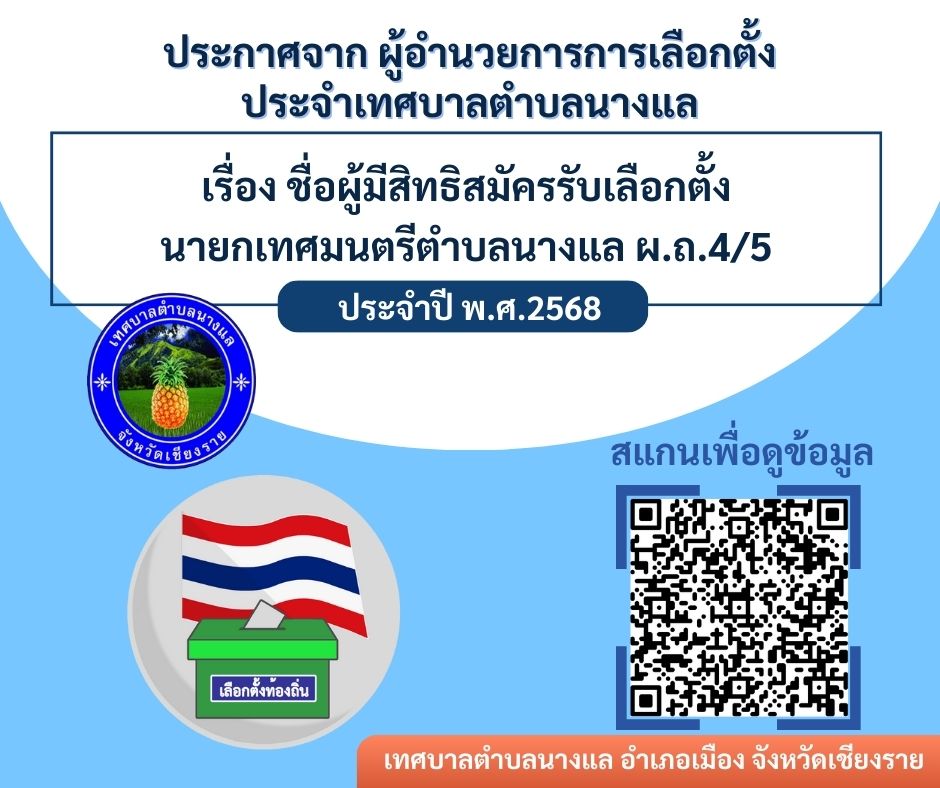 ชื่อผู้มีสิทธิสมัครรับเลือกตั้งนายกเทศมนตรีและสมาชิกสภาเทศบาลตำบลนางแล