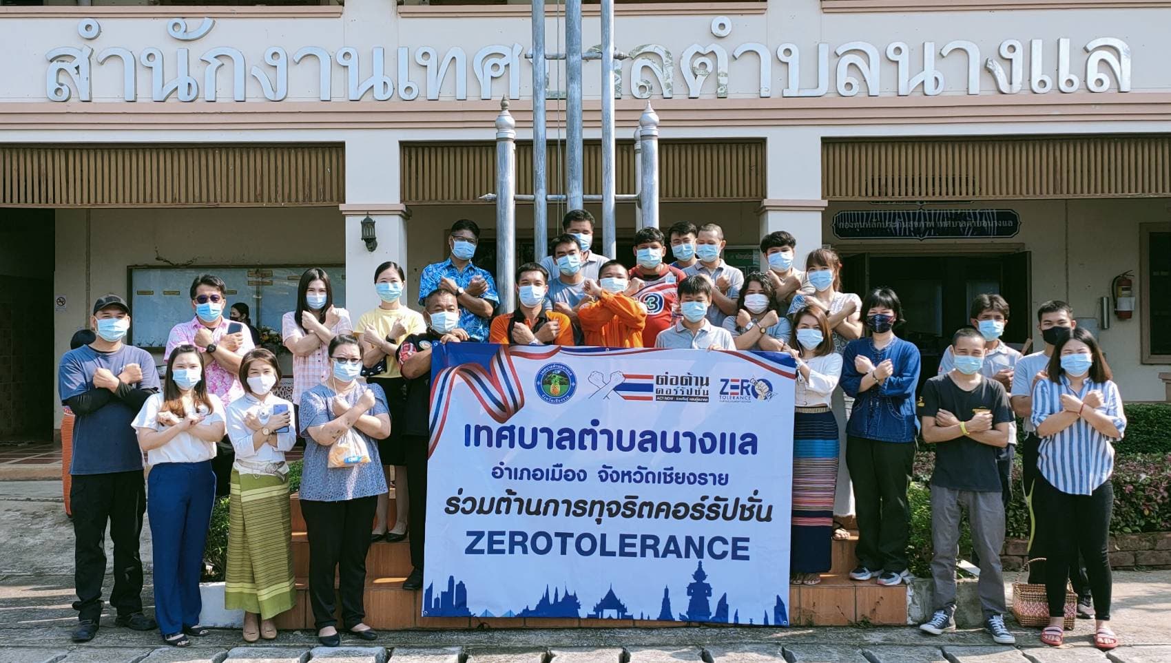 ว่าที่ร้อยตรีสุเมธ วิชัยนันท์ ปลัดเทศบาลปฏิบัติหน้าที่นายกเทศมนตรีตำบลนางแลพร้อมด้วยพนักงานราชการ ลูกจ้างประจำ พนักงานจ้าง และพนักงานจ้างเหมาบริการ ร่วมกิจกรรมแสดงเจตจำนงสุจริตในการบริหารงานและร่วมปฏิญาณตนแสดงเจตนารมณ์ต้านทุจริตคอร์รัปชั่น (Zero Tolerance) โดยพร้อมเพรียงกัน ในวันที่ 22 เมษายน 2564 ณ สำนักงานเทศบาลตำบลนางแล เพื่อแสดงให้เห็นถึงการส่งเสริมด้านคุณธรรมและความโปร่งใสของหน่วยงานรัฐ